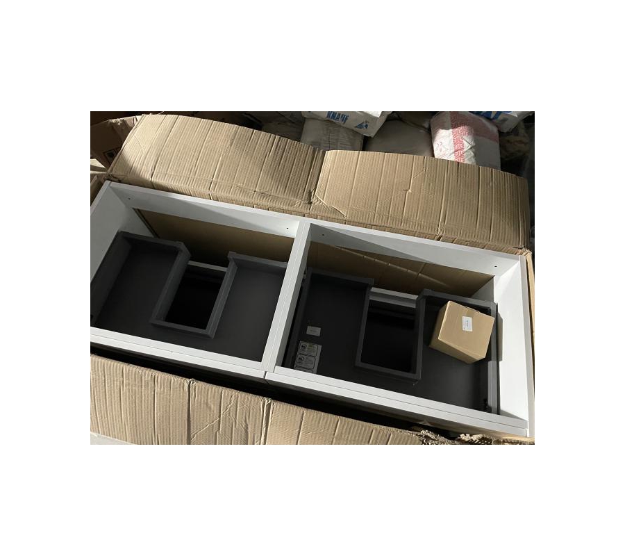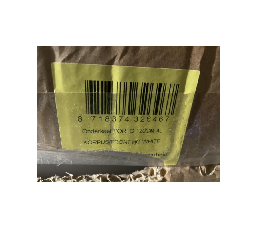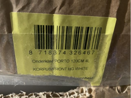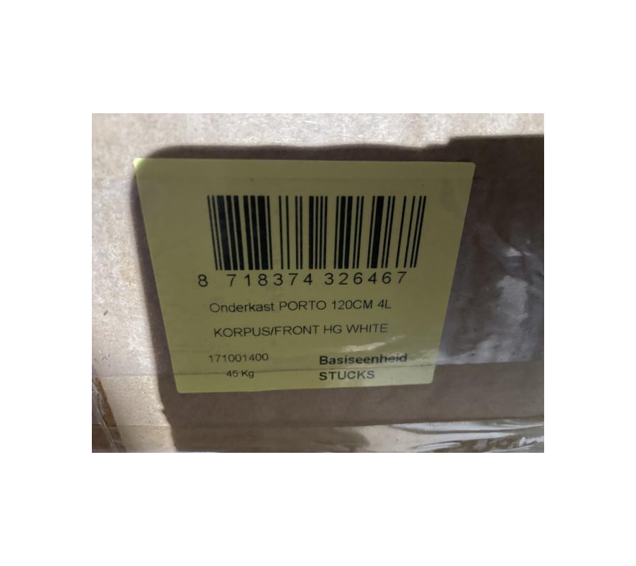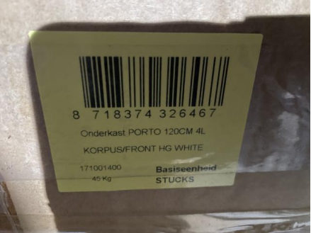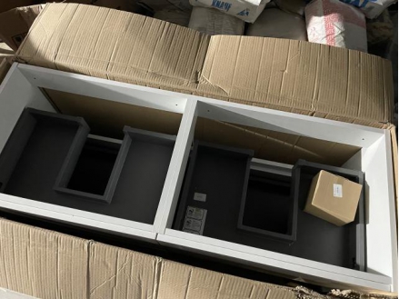 Lot d'un meuble de salle de bain en contre plaqué blanc, 4 portes dont une non fixée