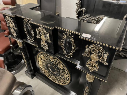 Lot d'un comptoir et meuble divers 126x47xh115 + table 145x50xh80 cm