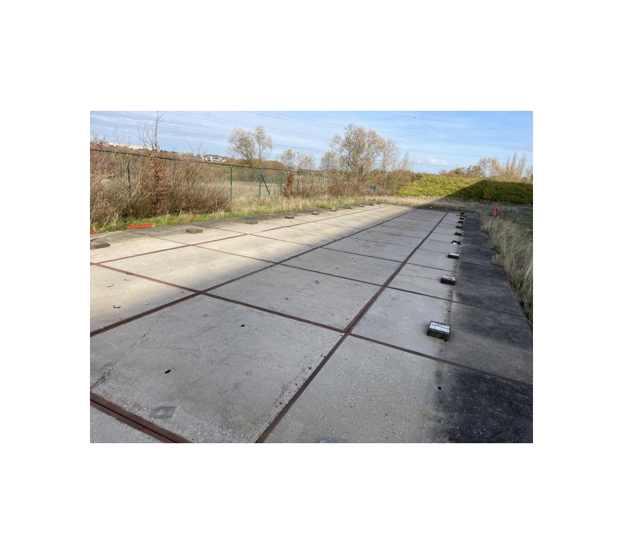 Découvrez ce lot de 32 dalles en béton de 200x200 cm avec une épaisseur de +-10 cm.