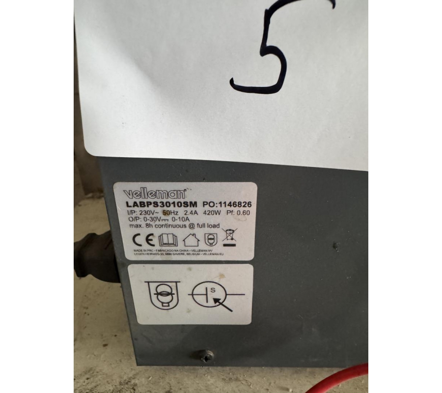 Velleman Alimentation de Laboratoire, Alimentation labo, réglable, 0-30 VCC/0-10 A, limitation de courant, Protection Contre Les Courts-Circuits, 2 x Affichage LCD à 3 Chiffres