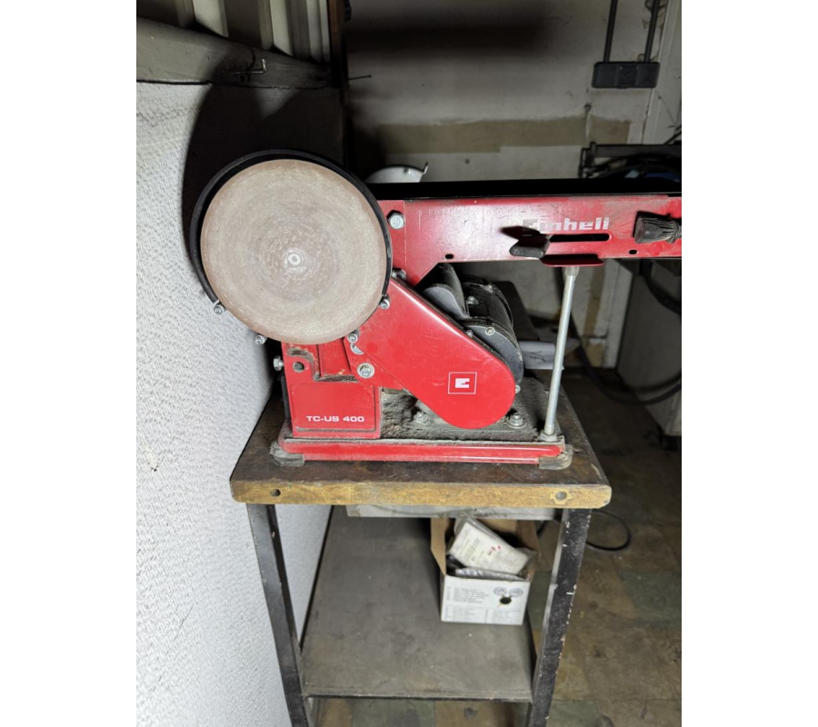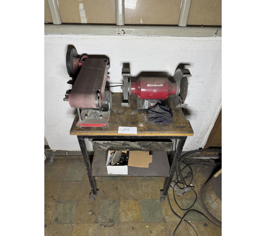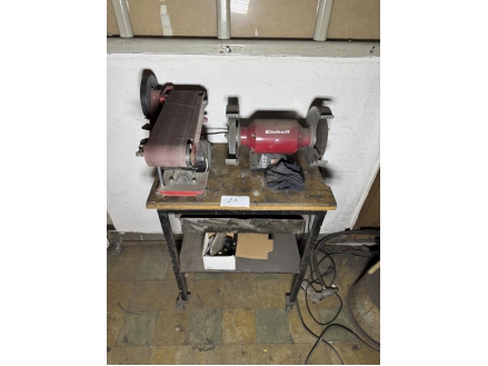 Lot d'une Ponceuse à bande / disque - 375W - 100 x 914mm EINHELL TC-US 400 et d'un touret à meuler EINHELL TC-BG 200- avec support