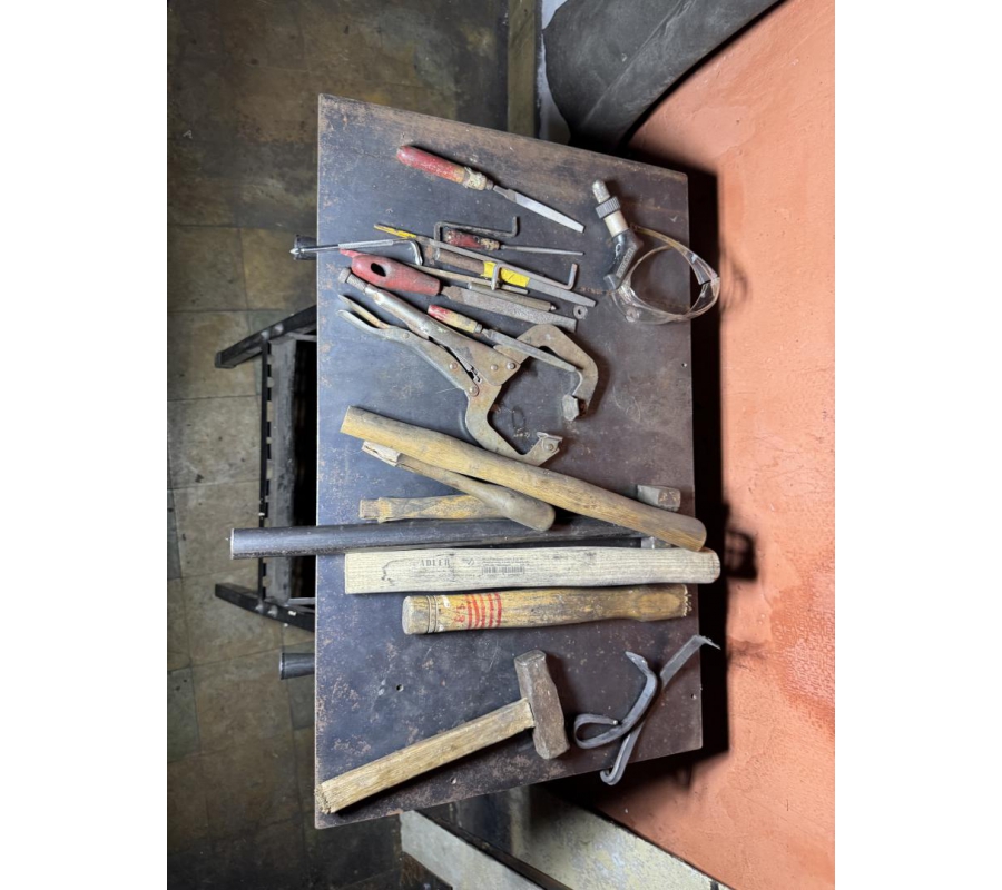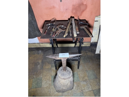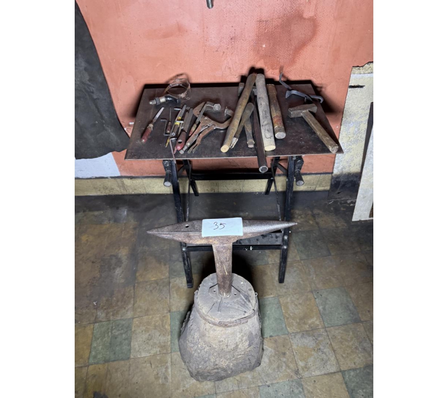 Lot d'une enclume, d'une table et d'outils variés Ref : 35