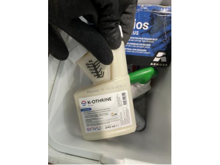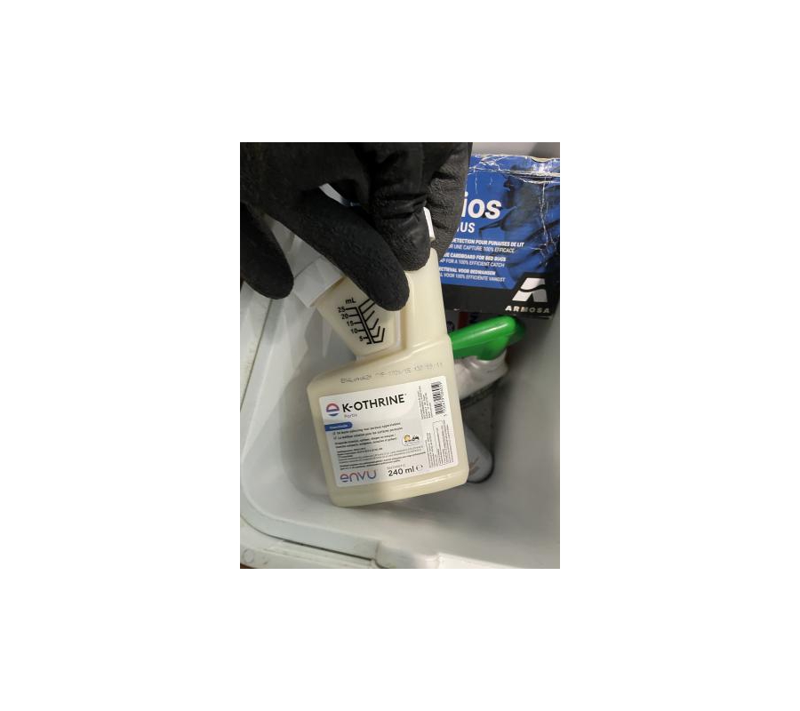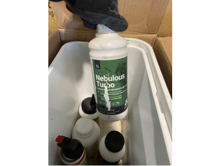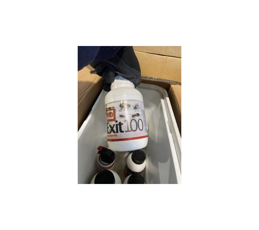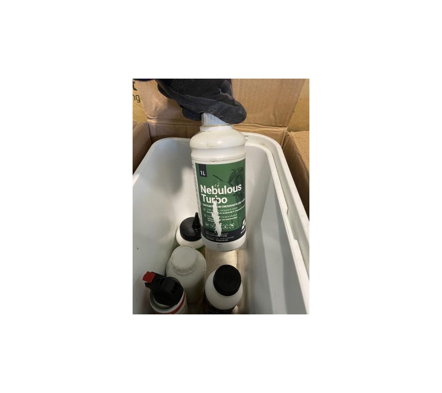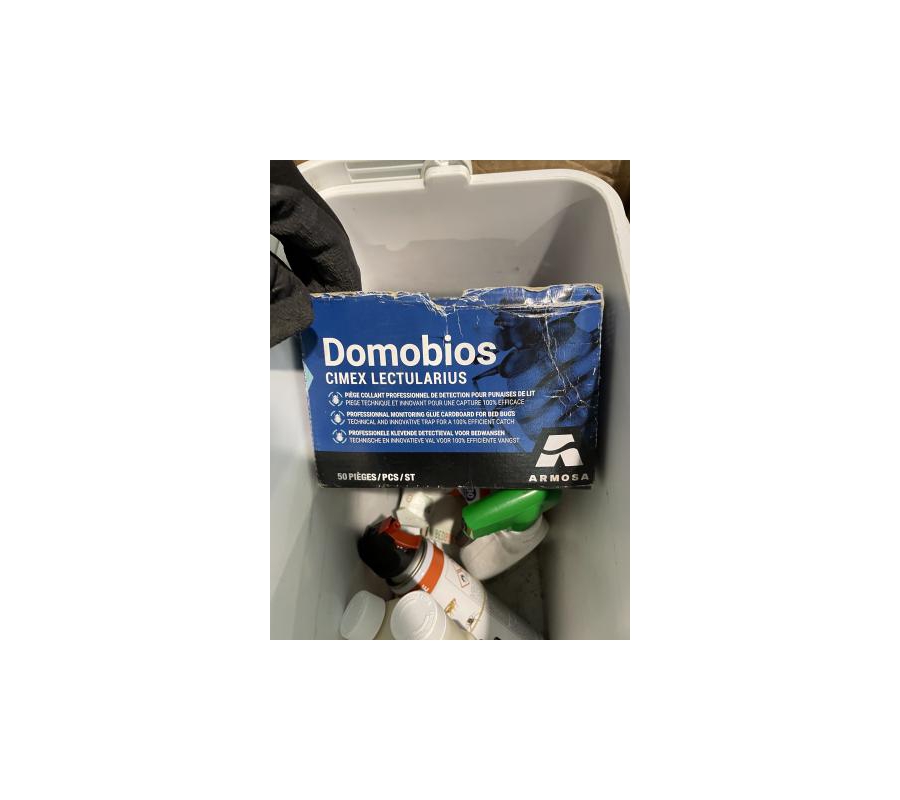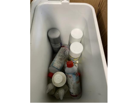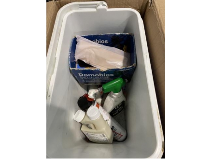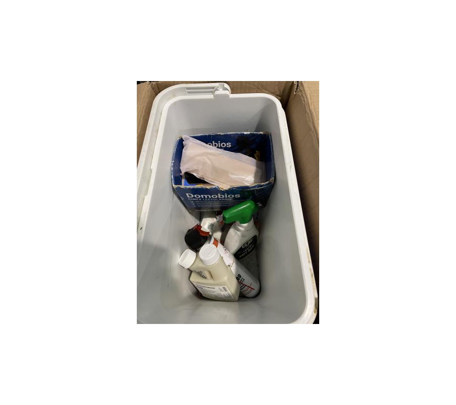 Lot de 8 bacs frigo avec produits divers (insecticides, désinfectant, …)