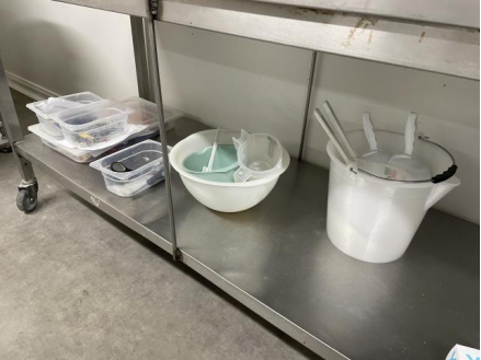 Bacs plastique, quelques couverts, …