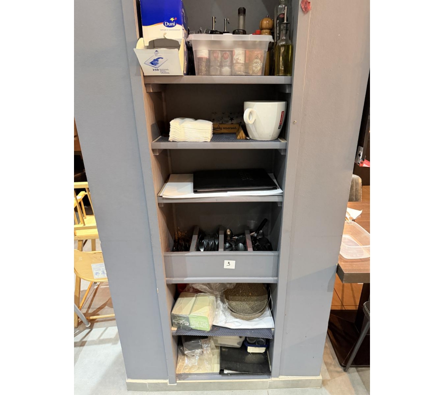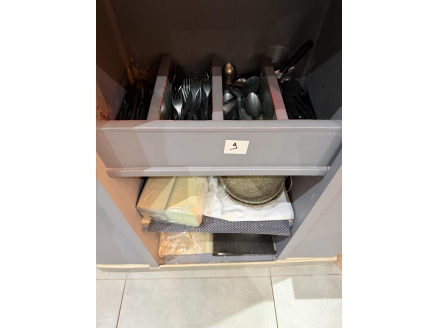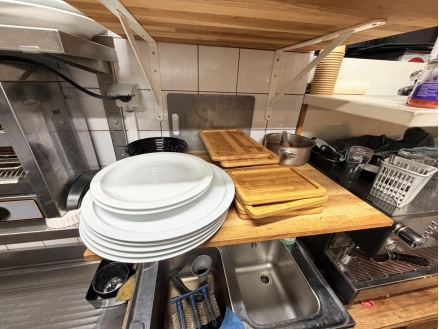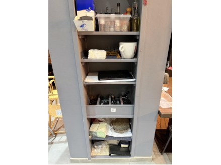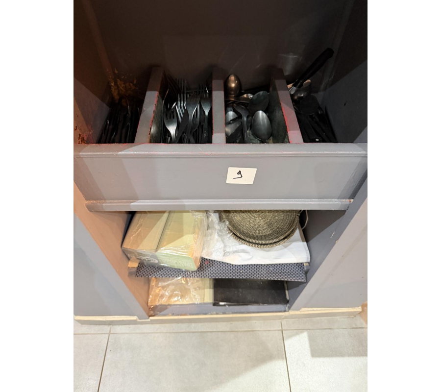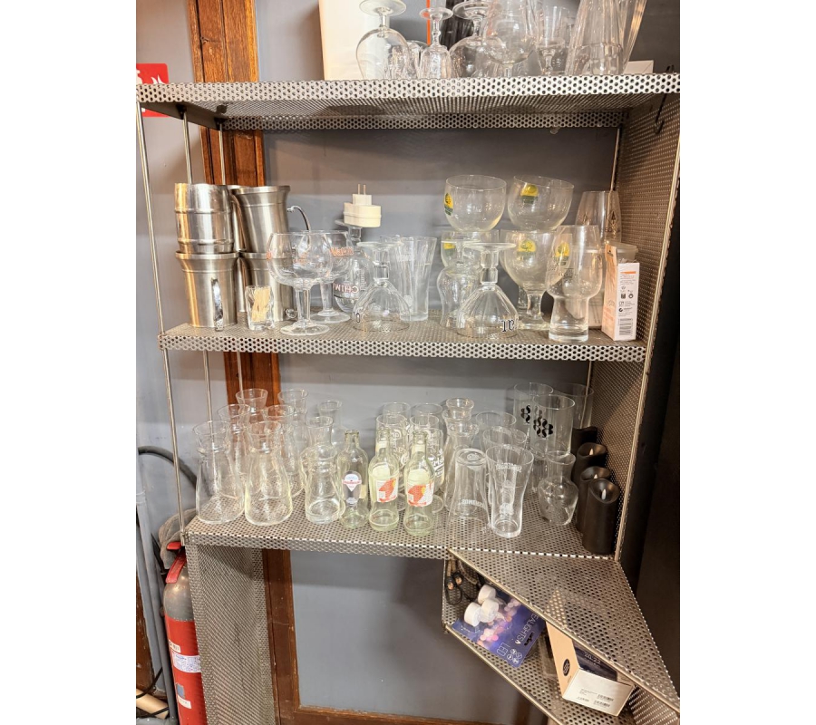 Lot de couverts, assiettes, condiments, verres, planches en bois, bols, poêles, casseroles, ramequins ...