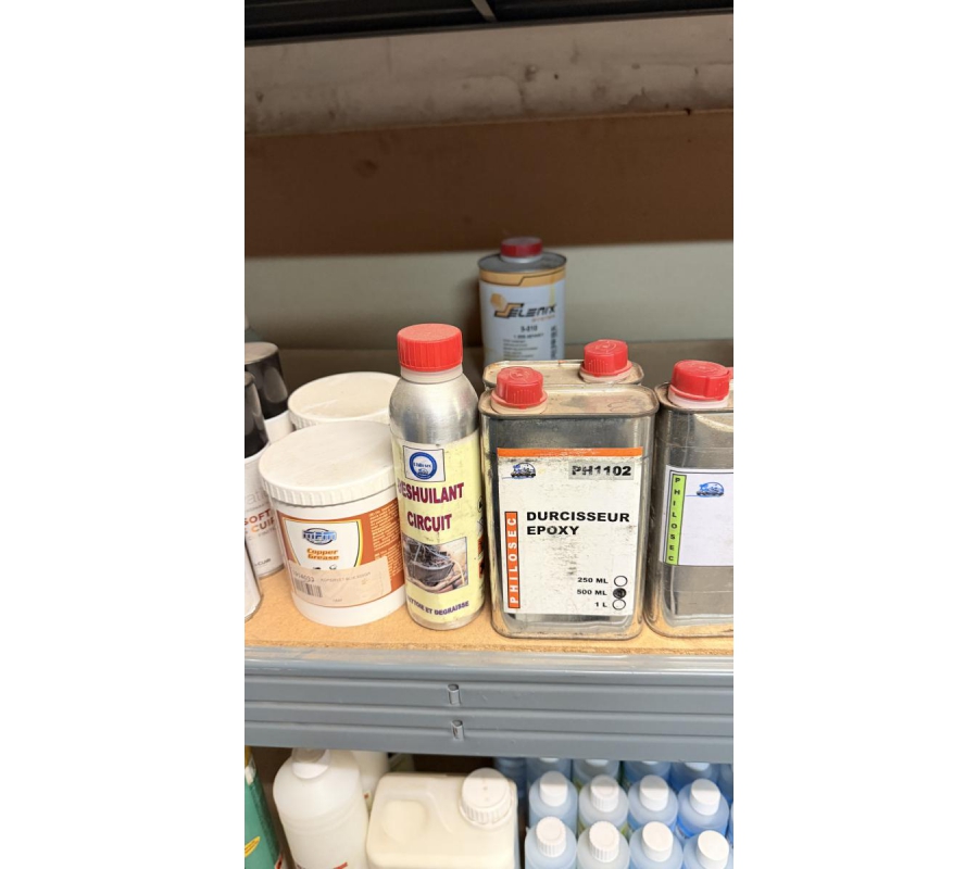 Lot de produits de protection, de peintures, de durcisseur … Ref : 22