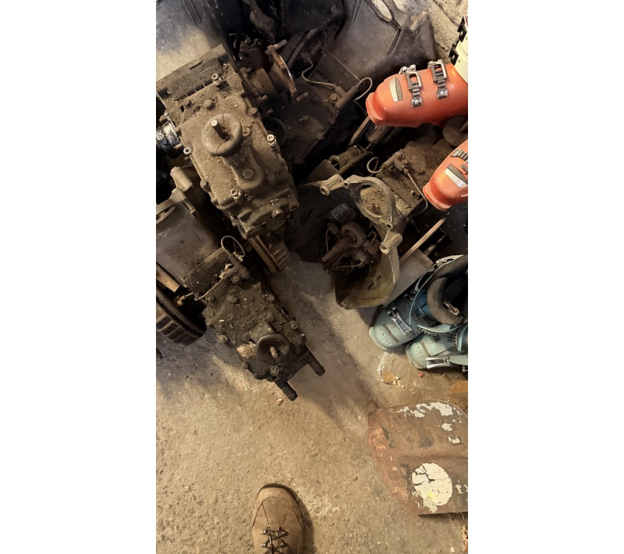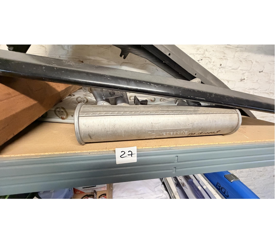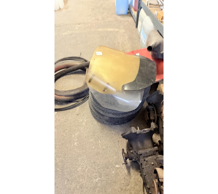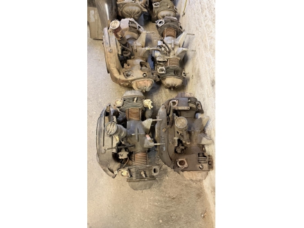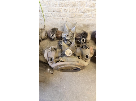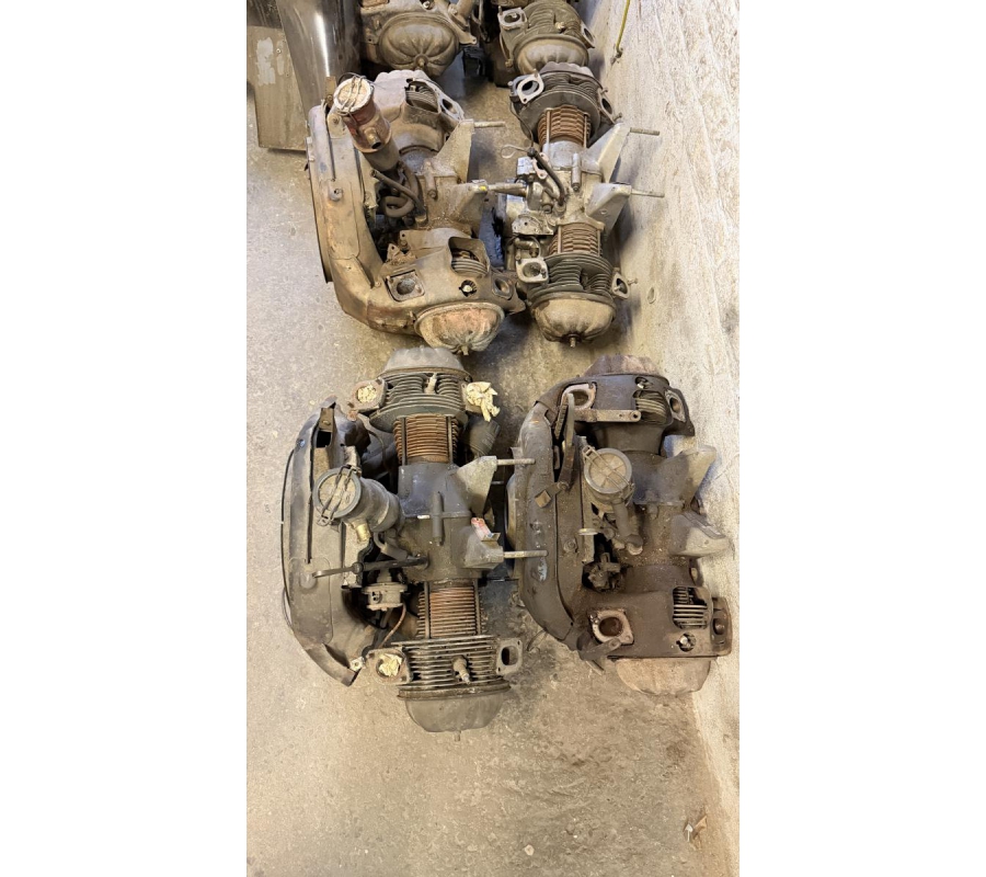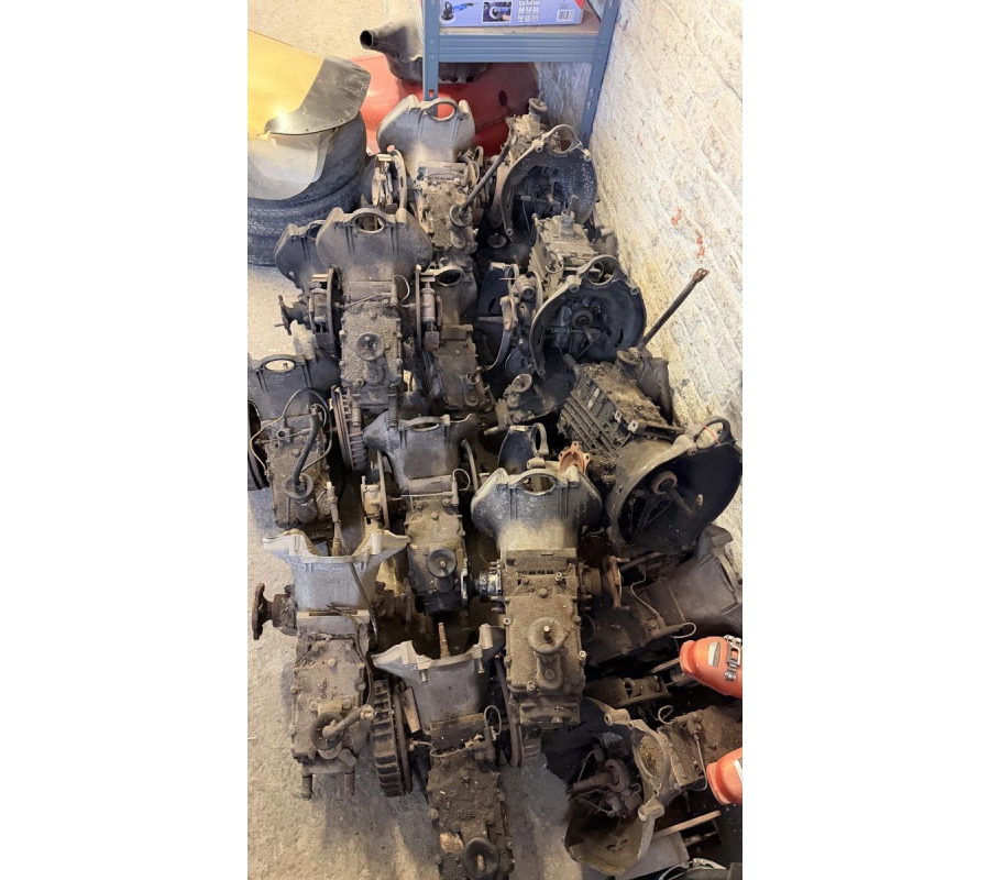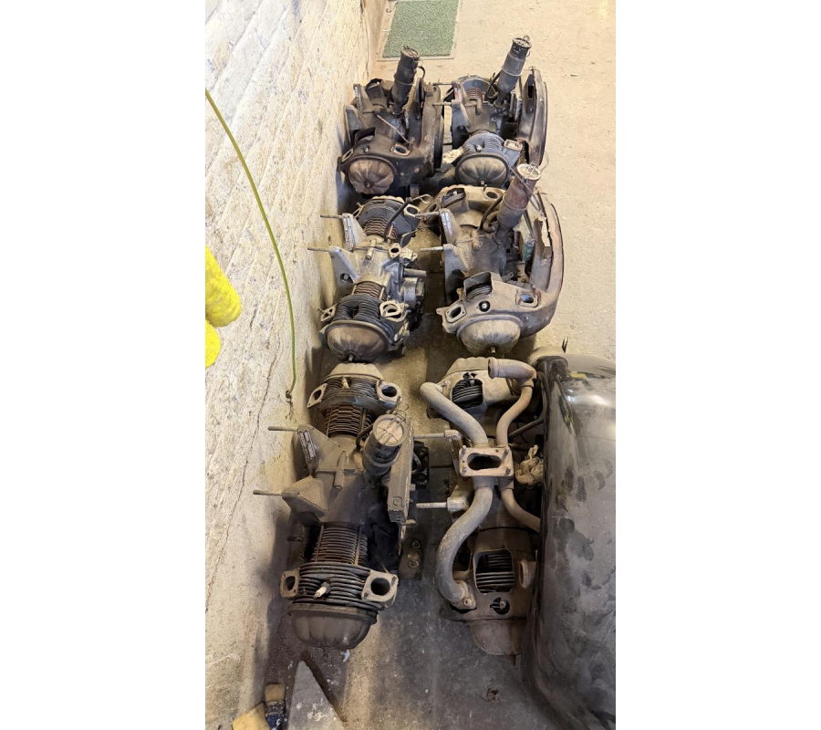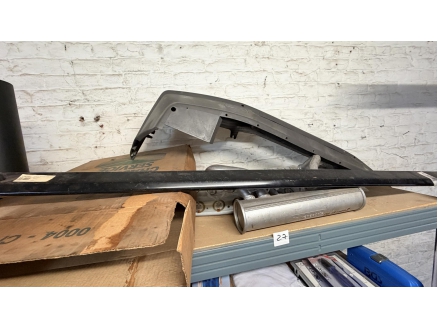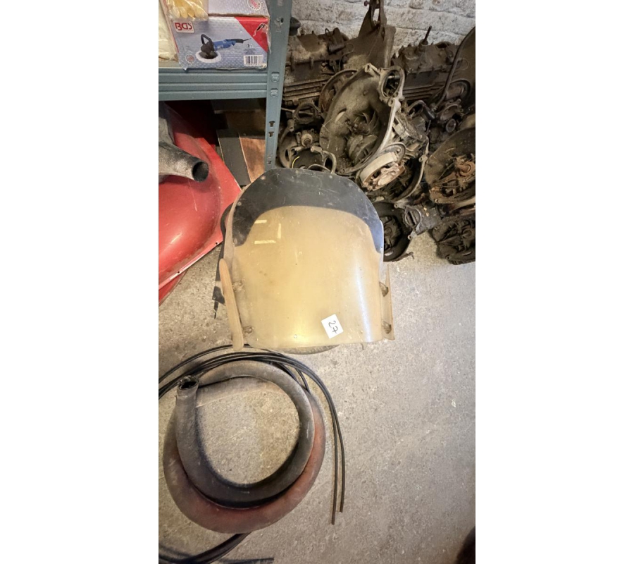 Lot de pièces neuves (un pot d'échappement 2CV, un bas de caisse 2CV, deux pots de suspension vide 2CV, deux pare-chocs avant 2CV, un pare-chocs avant Citroën Bx ou VISA, un radiateur Citroën BX 1400) et lot de pièces d'occasions (lots de boites de vitesse 2CV et Diane, trois bulles pour moto BMW, deux ailes arrières de 2CV, un réservoir 2CV, une aile avant 2CV, six moteurs 2CV et un réservoir de Fiat Flavie résiné)