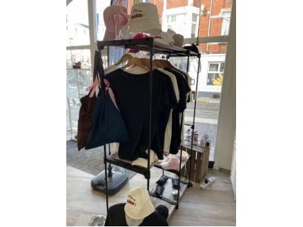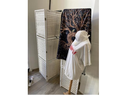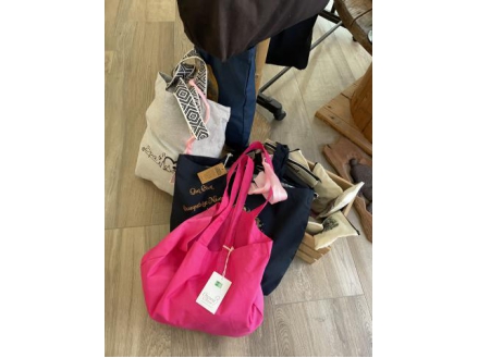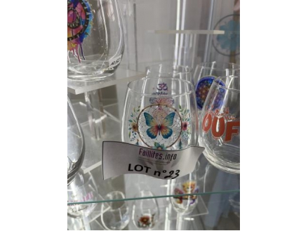 Lot de verres et accessoires divers (sacs, tringles, t shirt,…).