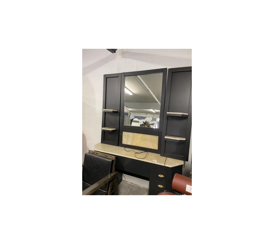 Meuble de coiffure 160x40x85 cm + miroir hauteur 135 cm en marbre lumineux